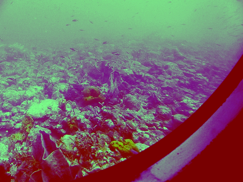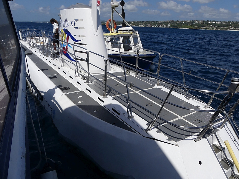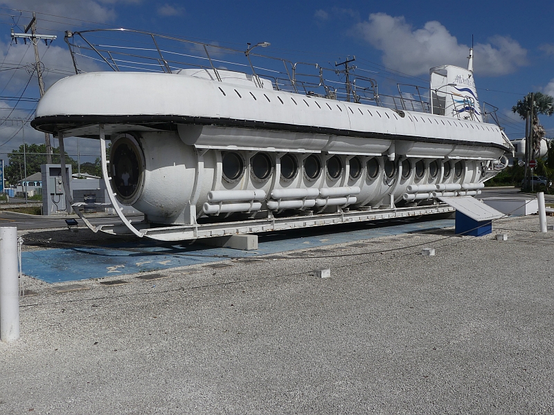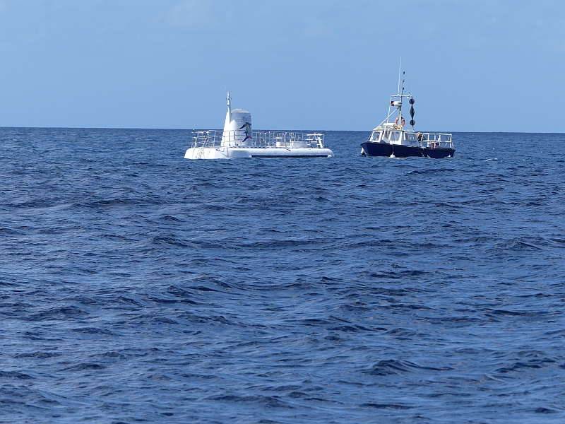 A conventional boat took us out to sea, where the submarine was waiting for us. We tied alongside it, then stepped onto its deck before climbing down the ladder to its viewing area. There were 20 seats on each side, each with a good view out of a porthole. Once we were sealed inside, the submarine descended to a depth of about 70ft so that we could observe the reef and its wide variety of marine life, before proceeding further down to a depth of 120ft where there was an old shipwreck. The commentary from our guide was excellent throughout the journey, and the view through the portholes was uniquely fascinating (although extremely difficult to photograph). As we returned to the surface we were delighted to watch a stingray swim past us, then all too soon we were climbing back onto the boat that would take us back to the shore.