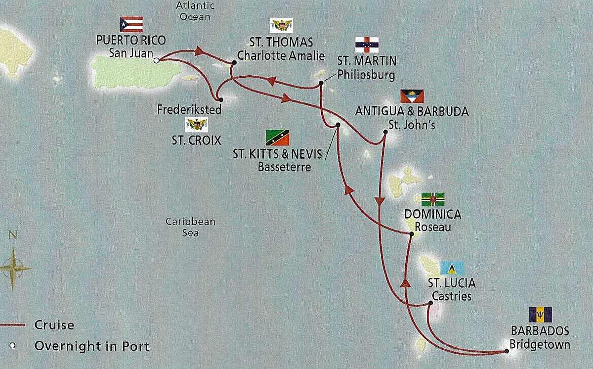 What an exhausting few days that had been! We were very glad to be able to relax in our beautiful cabin, getting a good night's sleep while the ship sailed smoothly onwards towards the rest of the Caribbean Islands ...