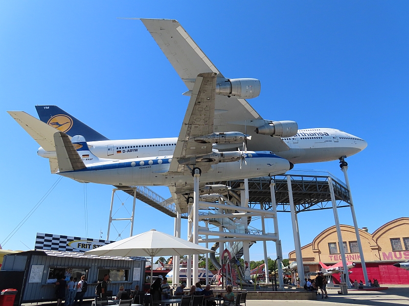 Continuing up the Rhine we soon found ourselves on waters that were new to us. These upper reaches were much smaller than the busy waterway that we left behind, and were also extremely pretty. Blue-boarding our way up the shallow channels, we reached the small, ancient city of Speyer; here there is a huge museum of transport which has the most incredible collection of exhibits. Unfortunately, rather like the museum at Koblenz which we had visited earlier, the organisers seemed to have no idea of how to present the fabulous exhibits to make an interesting museum. Instead, hundreds of marvellous vintage and modern cars jostled randomly with weird one-offs as well as lorries, coaches, bikes, army trucks, and other vehicles - all beneath hordes of bi-planes, tri-planes, WW2 fighters, hang gliders, air balloons, and so on without any descriptions or stories attached to them. Intermixed with these were fairground rides, steam engines, water-craft, etc, with no logic to their arrangement or positioning. Outside were larger aircraft (including some RAF planes shot down during the war), water craft such as speedboats, landing craft, ferries, etc, mostly awaiting restoration. The only exception was that space vehicles (rockets, space-stations, recovery modules both American and Russian) were arranged in a separate hall.