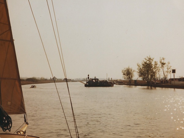 Another interesting bridge was the railway swing bridge at Reedham. With no radios or mobile phones, you would sail up to it, holding something dark such as a duvet or a bath-towel against the sail to show that you wanted to pass. The signalman would wait until the last possible moment before opening the bridge just enough to let your mast through before immediately closing it behind you, unless he was expecting a train in which case you would perform an emergency change of course when the hoped-for gap in the bridge did not appear.