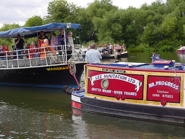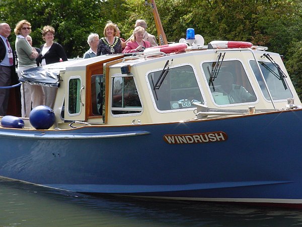 The whole affair was total chaos and great fun in the strong cross-wind, especially with a Salters steamer holding station in the middle of it all (and getting very close to Chris Coburn on 'Progress'). I must again offer my apologies to the rowing boat that our prop-wash sent under the trees.