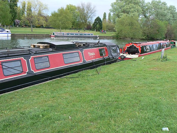 We like Abingdon, as it has a long stretch of excellent free moorings. As we came in to moor, we suddenly recognised a boat which was already moored there; it was our old boat Thistle. Mooring close to them, we were able to spend some time nattering with her current owners - who were about to head down to the Kennet and Avon canal so there was a good chance that we'd see them again very soon. Abingdon is also a delightful town, convenient for shopping, eating, drinking, and even for doing the washing!