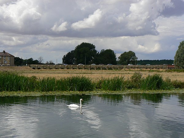 We were joined at Great Barford by a couple of friends who were keen to see Bedford from the river. Despite something of a hangover after a good evening with our friends from the cruiser - as well as another couple of friends from the Forum who had also joined us for the evening - we were up early to greet them and to make our way gently up the river. We had learned on our previous visit that with a long boat like ours it is best to ignore the signs on Great Barford bridge and to take the downstream arch when heading upstream, otherwise the current pushes the bows of the boat into the bushes before the stern has cleared the bridge, so that is what we did (much to our friends' surprise).