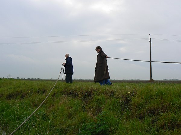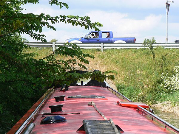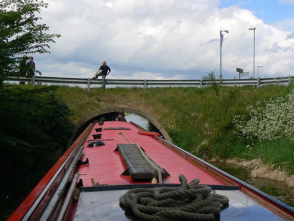 Our preparations for the weekend were almost complete. Six of us, and four dogs, were going on two boats so that one boat could tow the other backwards if necessary. We had already practised this manoeuvre on our way to the excellent South Kyme festival two weeks earlier, by travelling up the River Kyme with the two boats breasted up but facing in opposite directions so that we did not to be able to wind in order to return. We had also removed all unnecessary items from our roofs – plant pots, chimneys, radio and TV aerials, etc – but still we were well above our 5’6” target height. Filling the water tank and moving all the heavy items to the front of the boat had brought us both down to 5’8” and it was clear that our friends’ boat could not be made any lower, but we could gain those extra two inches if we removed the bracket which held the TV aerial. The bolts had rusted solid after 20 years in place, but after a few minutes with a hacksaw the bracket was clear and we were down to our target of 5’6”.