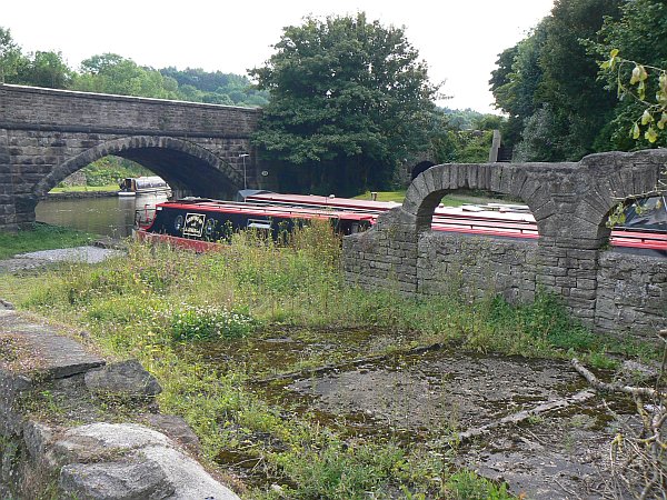 The wonderful bridges on the Macclesfield canal are always a delight to behold, especially when the towpath changes sides at one of the "snake" bridges which allowed a horse to change to the other side of the canal without detaching the tow-rope. However the bridges are narrow enough to make their navigation tricky, especially on a windy day or when the brickwork is obscured by overhanging vegetation, and sometimes also a modern extension not only hides their beauty but also makes it extremely difficult for a long boat to pass through without being able to bend in the middle. Adding to the difficulty of aiming for the bridge-hole, at the junction in Marple two boats had moored side-by-side right on the corner and as I couldn't see past them I just had to aim the front of the boat in the general direction of the bridge and hope that it didn't hit anything!