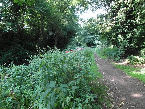 We moored with some difficulty amongst the nettles, helped by the boat in front of us who actually had an electric hedge-trimmer with them, and walked up to inspect the fallen tree. Apart from its size, the other problem that it presented was that it had fallen down a steep embankment; the contractors explained that the trunk would have to be pulled up to the top of the bank as any attempt to cut it into small pieces would result in it becoming lodged in the bed of the canal from where it would be much harder to retrieve. Unfortunately to do this they would have to bring some very large winches on lorries across the back lawn of the house at the top of the bank.