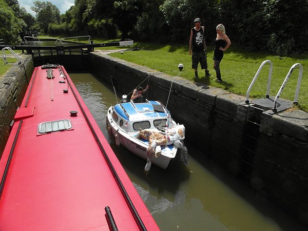 Sharing the locks with a tiny cruiser and a straw donkey |
