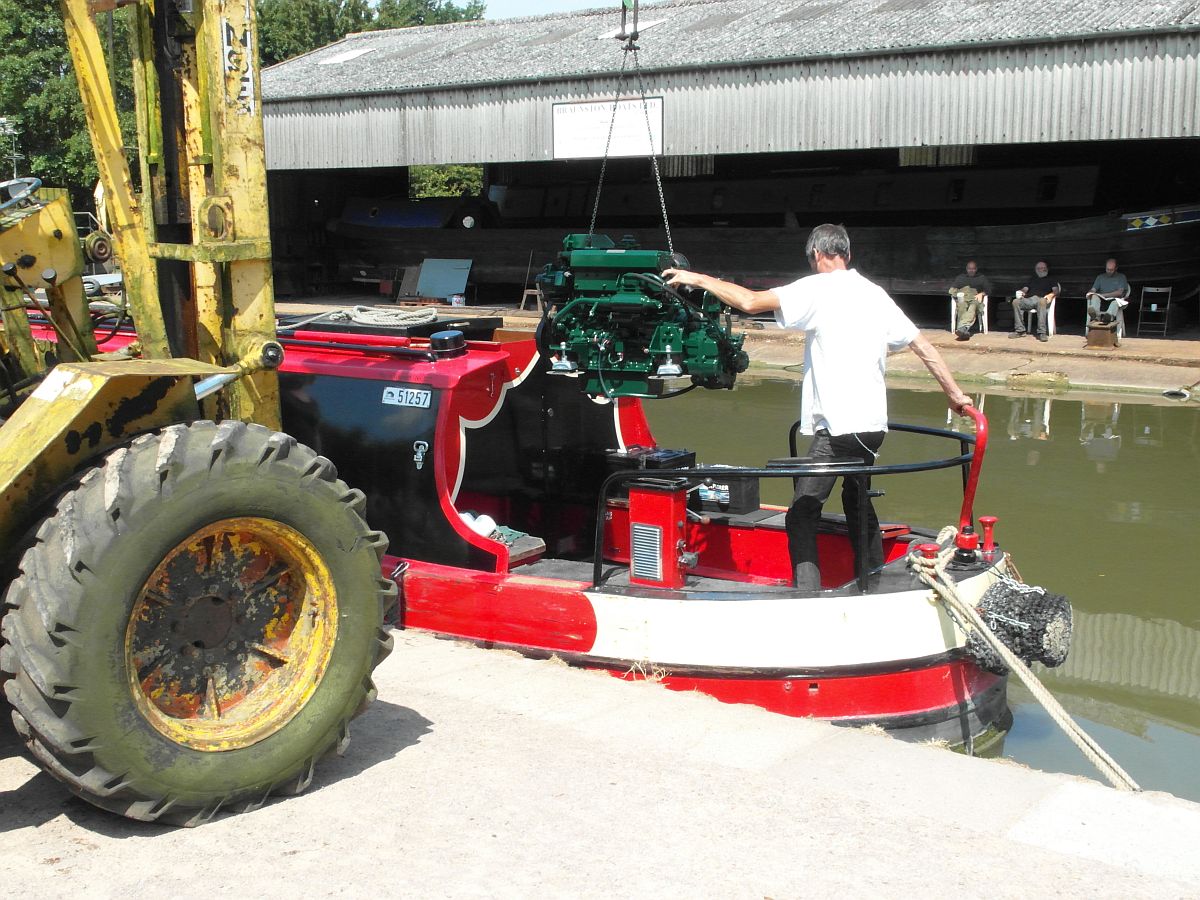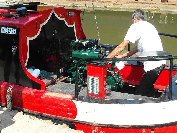 On our springtime trip we had decided that we would have to buy a new engine. Dorothy (Perkins) was worn out after about 15000 hours, so we had placed the order with Beta Marine for a brand-new 43hp engine (to be named Bertie, short for Roberta). The engine mounts were to be specially made according to dimensions which I had supplied, and I was absolutely terrified in case I had made any mistakes in my measurements. Towards the end of June I had made all the modifications that I could to be ready for Bertie's arrival including new wiring, a new inverter, and a new dashboard; word came through that she was to be delivered to Braunston on 1st July, and so we set off to be there ready to meet her.