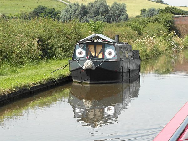 Before Braunston we met three young people on a small cruiser which they had just bought and which they were taking from Ely in Cambridgeshire down to Oxford. We were amazed to see that they were sharing the tiny cabin with a huge dog, but were even more amazed to see that they had a large straw donkey spread-eagled across the fore-deck; apparently they had won it in a line-dancing contest at a boatyard on the Ouse where they had stopped for the night despite never having line-danced before. We were impressed with their general enthusiasm, and we thoroughly enjoyed sharing the locks with them before giving them directions to Oxford (they didn't have a map).