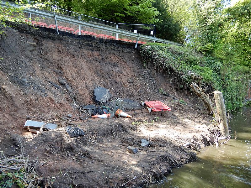We wondered if we would have to go back down the river and join the Worcester & Birmingham Canal to by-pass the stoppage on the Staffs & Worcester, but we received an email from CRT that their engineers had managed to open a narrow channel through the landslip so that boats could squeeze past under supervision. In fact by the time that we got there CRT had decided that boats could pass unsupervised, as long as they did so during normal working hours and could therefore call for assistance if there was a problem.