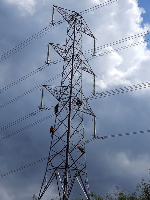 Intrepid engineers swarmed up this electricity pylon |
