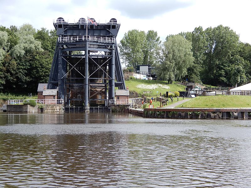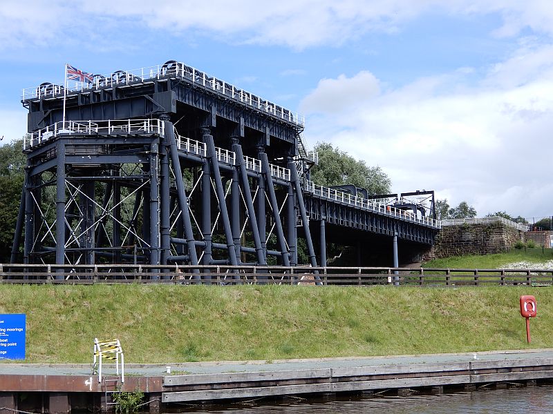 We couldn't miss the opportunity to spend a couple of days on the beautiful River Weaver, not having had enough time to stop there on our way towards Liverpool, so we pulled across to the Anderton Lift and almost immediately were able to go down to the river itself. We couldn't go far downstream because the first lock, Saltersford, was closed for major repair work which had taken months longer than expected (not least because floods had washed away the partially-completed repairs a few weeks before) so we went just a short way down-river to an isolated mooring spot that we know. The next day we went up-river to the beautiful Vale Royal moorings; the lock keepers said that it had been an extremely quiet summer - partly because of Saltersford lock being closed and partly because of the weather. Indeed the river had been in flood and therefore closed to navigation just the week beforehand, and with storms forecast it was likely to be in flood again before the following week, so we hurried back to Anderton and rode the lift back up to the safety of the canal.