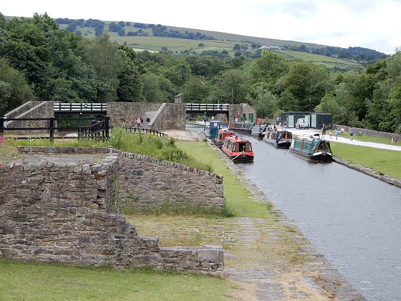 Closures on the Lower Peak Forest Canal at Marple (which had lasted for over a year) and on the Macclesfield Canal at several places including Bollington and Bosley, had severely restricted the ability to travel on these two spectacular canals recently. We had diverted around the Marple Flight by not going through Manchester, and the Macclesfield was at the moment (just about) open for its full length, so we took the opportunity in rapidly-improving weather to take a trip along to Whaley Bridge and spend a night in Bugsworth Basin. In fact this was rather convenient for we had been having a slight problem with our exhaust system which had sheared one of its support brackets, and on the Upper Peak Forest Canal we would be passing the boatyard at Furness Vale who had fitted it for us 3 years ago. A few modifications to the way that the silencer was supported, not only cured our immediate problem but also made the whole engine & drive system seem quieter and smoother than ever before, so we very glad that we had stopped - thank you TW Marine.