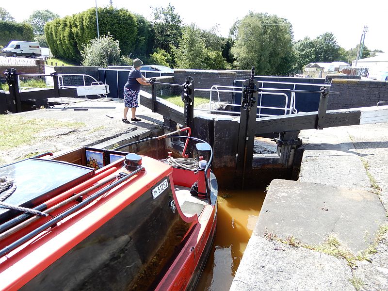 Leaving Liverpool was made particularly easy by the large group of CRT volunteers at the locks, and we quickly continued to the broken swing-bridge where we again waited a day for it to be swung open. We found ourselves at the head of a long queue of boats there, and it proved to be a highly sociable gathering as all the boaters strolled up and down the towpath chatting to each other (and their dogs did the same).