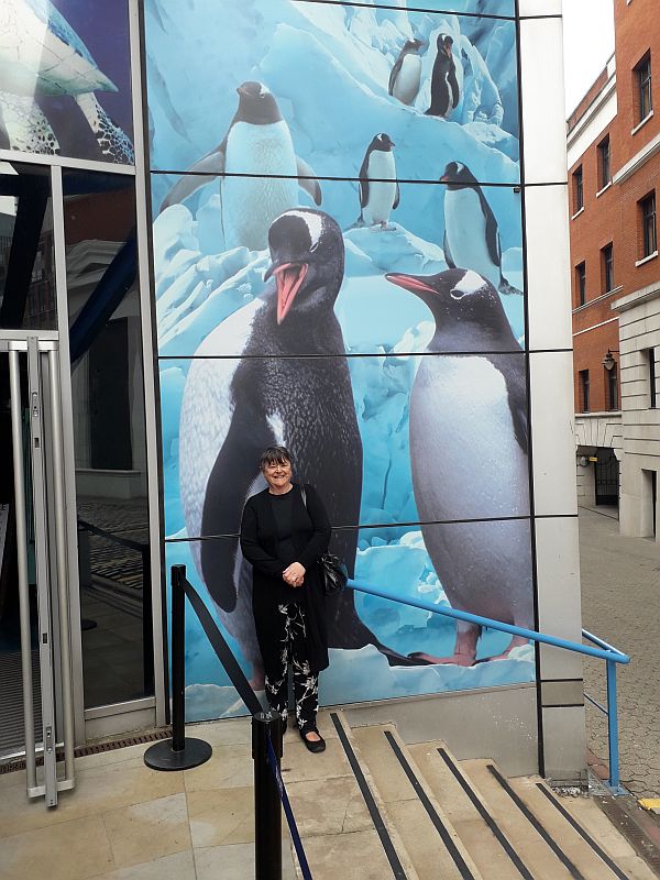 Debbie makes a new friend outside the theatre |