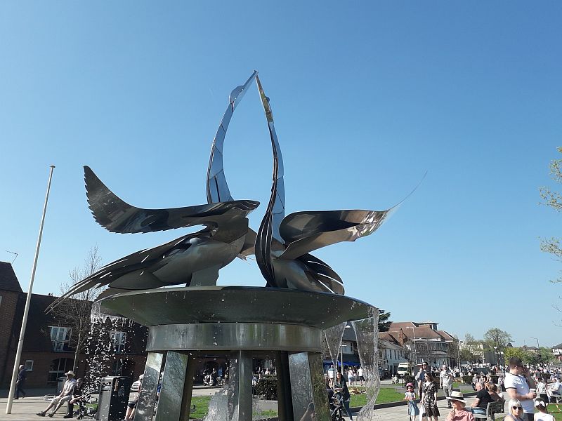 This wonderful statue of a pair of swans is in the park next to the Basin in Stratford |