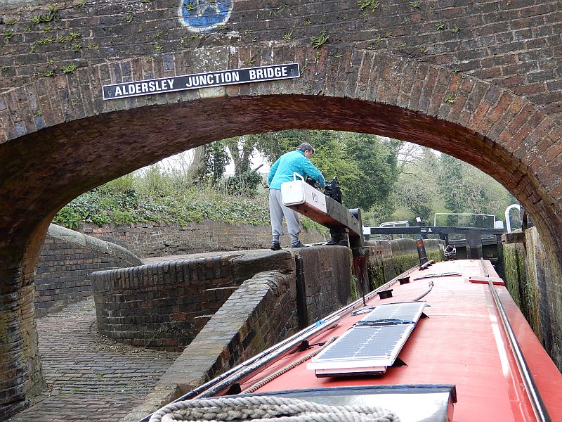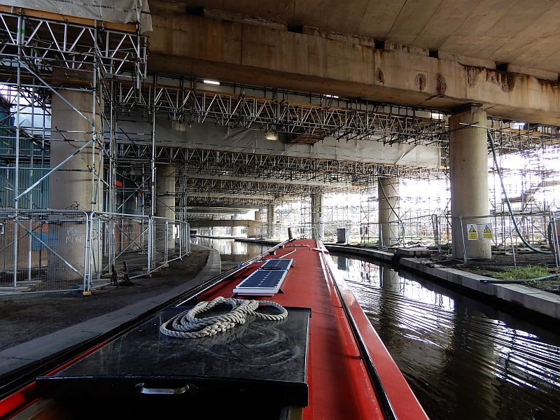 It seemed that our luck was in because soon after we reached the top of the flight we received an email from CRT telling us that the New Main Line had re-opened after the winter repairs which would allow us to have a quick and easy run to the City Centre. Sure enough there were no signs of closure at Factory Junction, and CRT confirmed by phone that the canal was definitely open, so we went down through the three locks and set off along the New Main Line - but not for long. A mile later we found a barrier stretched across the canal; and made the next of our many, many calls to CRT that afternoon. On these calls we were variously told that we must be in the wrong place, that we were in the right place, that the canal was open, that the canal was about to re-open, that the local staff were with us, that they were not with us, that they were on-site, that they were at a different site, that they were not on-site, and finally that the canal was not going to re-open. We had to reverse for a mile (which is never easy in a narrow-boat) and go up the three locks backwards (which can be quite hazardous), and by that time it was too late to get to the city centre that night.