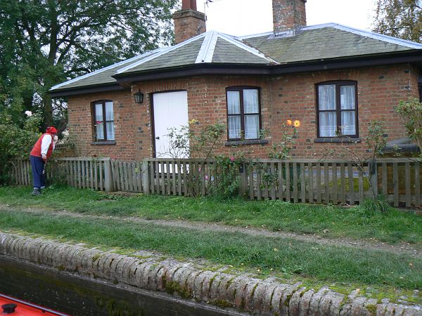 An unusual lock cottage (Debbie is smelling the roses in their garden) |