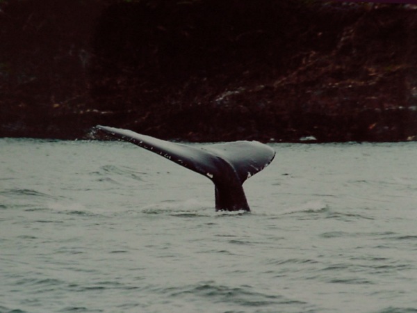 Off we went full of excitement that we could see whales – although the company that run the trips do offer refunds if no whale is seen. Out into the bay to start looking for the tell-tale water spout and yes there’s a whale – it’s a Humpback who stays around for about 5 minutes then decides to leave us to look at an empty sea. However about 5 miles away we see the fin of a Killer Whale which is larger than the boat it is by! We also see some seals enjoying a sleep on a buoy, not very quiet though as every time they move the bell on the buoy sounds! But yes we saw a Whale.