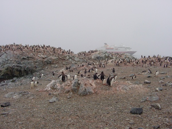 Monday morning saw us at Yankee Harbour on Greenwich Island. This natural harbour had been used extensively by American Sealers as a safe haven for their vessels. While we were waiting to go ashore the nearby glacier calved for the entire time and the brush ice that it produced slowly filled the bay so the landing site had frequently to be moved. Here we visited a Gentoo Penguin rookery, the noise was unbelievable, but the baby penguins we saw were unbelievable, chasing their parents for food and generally behaving like any youngsters!