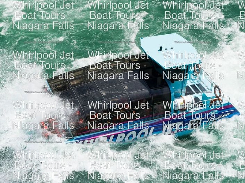 The next day the group went to Niagara Falls to take the boat-trip right up to the falls, which we had enjoyed 2 years ago. It's a very enjoyable boat trip, but we saw little point in repeating it so, after travelling with the group to the Niagara Falls area, we turned the other way from them and took a taxi 6 miles to the location of Whirlpool Jet Boat Tours who offer a variety of white-water experiences on the rapids downstream of the falls. We were there in plenty of time so were able to choose the best seats on their 'Freedom Jet'; this boat gives you the option of staying dry inside a glass-walled compartment, or getting wet on one of the two rows of open-air seats in the front of the boat. Guess what, we chose the front row of open seats!