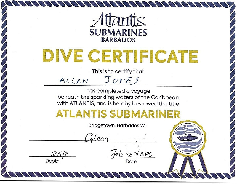 Back on shore, we were each presented with a certificate to commemorate our dive, before returning to the ship to continue our Caribbean cruise ...