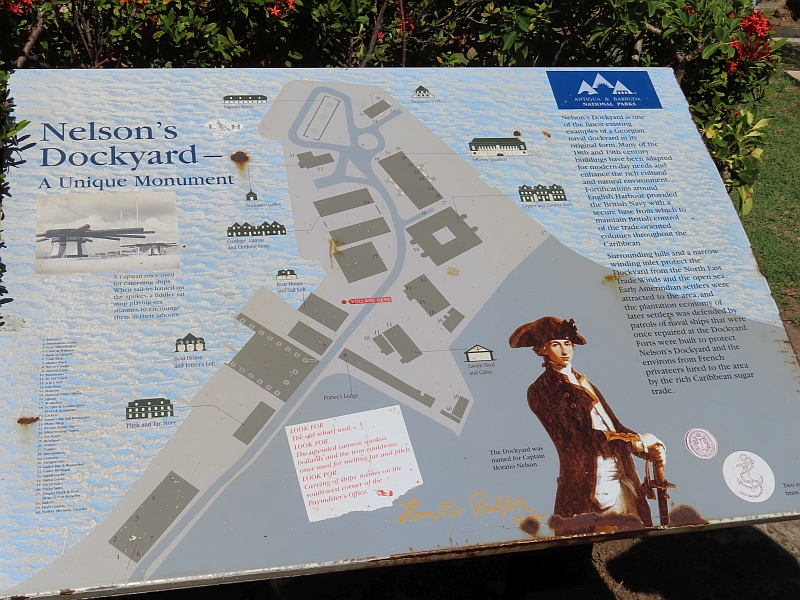 The next day started with a minibus tour of Antigua, during which we visited one of the hilltop observation points that used to communicate with other posts by means of flags by day and lamps by night. From this post we had a clear view of Nelson's Dockyard and its associated harbour. We were told that Horatio Nelson hated Antigua: it was too hot, he didn't like the people, and there were many insects which would bite you (sometimes fatally). As a result he hardly ever ventured out of his office at the Dockyard throughout the 3 years that he spent here.