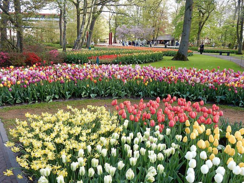 The following day was a visit that Debbie had wanted to experience for many years: a trip to the Keukenhof Gardens. Open for just a few weeks every spring, these wonderful gardens are the showpiece of all the major Dutch bulb growers. Amid passing acres and acres of bulb fields, we were given just a couple of hours to explore this glorious exhibition whose attractions could easily fill a whole day with its outdoor display fields, themed indoor pavilions, play areas for the children, picnic areas and food outlets galore. : I took a couple of hundred photographs, and have collated just a few of them on one page here to let you view them more easily.