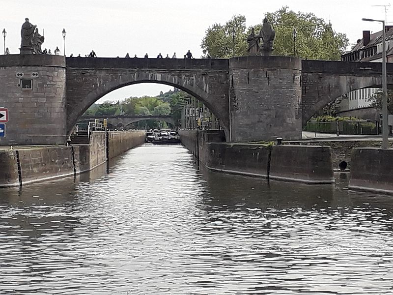 Back on the Rhine the ship had struggled to keep to its schedule because the river was flowing very quickly, and we had hoped that the slower-flowing Main would allow us to catch up some time, but this was not to be because the river had only recently re-opened after some mild flooding and priority was being given to commercial vessels so that they could all get through before the level dropped too much. Several times we had to pull over and wait in the shallows to let a commercial barge come past; then of course we had to wait at the locks while they went ahead and then wait again until a ship came the other way to use the lock because the lock-keepers would not waste water by turning an empty lock around for us. As a result we waited nearly 2 hours at each lock, and were soon well behind schedule, but we counted ourselves lucky because the Rhine and Main were both fully navigable for us, and the Danube was reportedly at a good level too; this balance is quite rare, and most people whom we know to have travelled these rivers have reported that their cruise had been seriously curtailed by the river conditions where it was too shallow to navigate, or too high to pass under the bridges, or too fast-flowing for safe travel, etc.