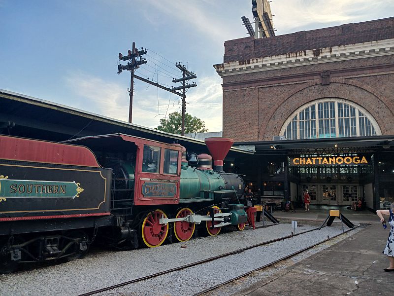 After the return descent to the lower level, we entered Chattanooga itself and checked into our hotel before strolling up to the famous railway station which was once one of the main hubs of the north-south railroad system but is now just a museum area. We had a good meal, and a few drinks, in one of the bars there before catching the free shuttle bus back to the hotel area.