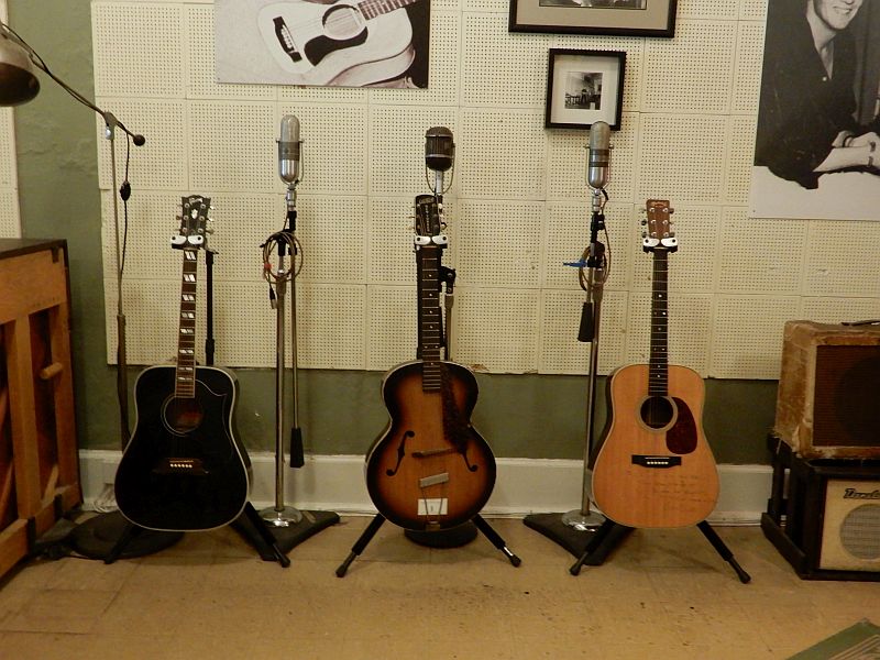Our busy day in Memphis was by no means over! After leaving Graceland, we immediately headed directly to the Sun recording studio. In the early 1950s this studio was renowned for giving new and unknown artists, both black and white, a start in the recording industry. These unknown artists included such names as Elvis Presley, Johnny Cash, Jerry Lee Lewis, Roy Orbison, Carl Perkins, Charlie Rich, B B King, Rufus Thomas, and Howlin' Wolf. We were given a simply excellent tour of the studio by a very enthusiastic, highly talented guide; she even played to us to demonstrate how Johnny Cash would create his distinctive rhythmic guitar sound by folding a Dollar bill into the strings so that they sounded as if there was a snare-drum in the background.