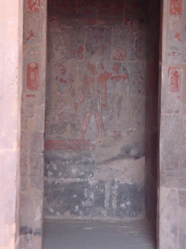 The temple has been largely restored (or more accurately re-created), and you can see that it is a very modernistic design that would not look out of place in a modern-day city. Hidden away on the back wall of a side-temple there is the one remaining picture of Hatshepsut which somehow escaped the cleansing actions of Tuthmosis.