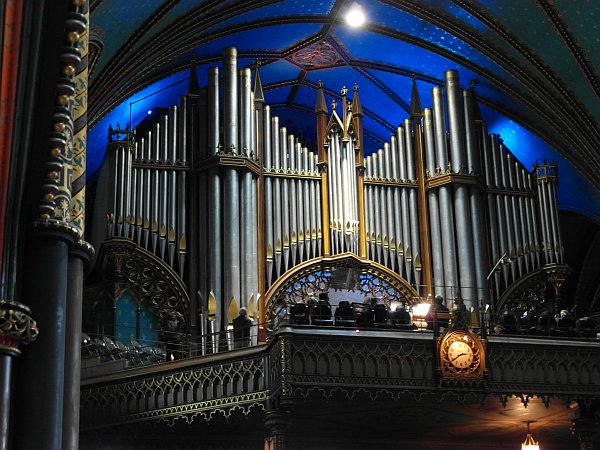 The interior of the Basilica was one of the most beautiful that I have ever seen. On our excellent guided tour we had ample opportunity to enjoy the magnificence of this amazing building, with its wonderful blue-and-gold colours and its amazing stained-glass windows that told the history of Montreal, but for me the highlight came when the organ started to play. The sound of this huge instrument, with its 7000 pipes, was so stunningly beautiful that I literally had to stop and catch my breath to keep the tears from my eyes!