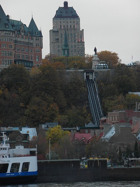 After a guided tour of Quebec, we decided not to return to the ship for lunch, but instead left the coach party and sat in the sunshine outside a small cafe at the Place Royal for a delightful snack before exploring the city on foot. We visited countless souvenir shops and bought presents to take back to England; we marvelled at the tourist sights including the pumpkin fairs; and we took the funicular railway up to the higher level in front of the Frontenac, where we discovered that the underground ruins of the old Governor's Mansion were open to visitors. The most fascinating thing about this exhibition was that because the mansion had burned down so quickly and collapsed into the cellars, not only had the occupants not had time to take their personal belongings with them but also they had not attempted to reclaim them from the rubble. As a result, recent excavations had unearthed a wonderful time-capsule of daily life in the Mansion.