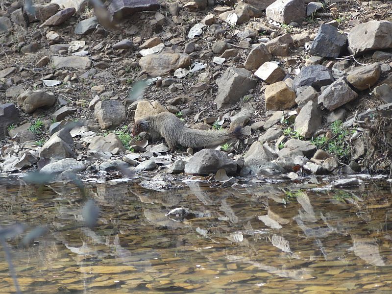 We returned to the hotel for a delicious lunch and a short rest, then boarded our vehicles again and returned to the Park. Once again our guide was excellent, pointing out to us various other creatures such as antelope and peacocks. It had been a fascinating day and then suddenly, just as we were about to turn back towards the hotel, a tiger stepped out onto the road and turned to face us head-on from about 50 yards away. Enthralled, we all held our breaths as she slowly strolled up to about 20ft away from us and paused to see our reaction. The jeep driver slowly backed away, and as he did so the tiger kept the same distance away. Our guide made noises similar to a frightened animal, explaining that not only would this help the tiger to feel that she was in control, but also the sound would let the other vehicles know that we had found her. The guide recognised her as a 7-year old tigress called Siddhi who is extremely powerful - especially as she now has 3 young cubs to protect! She is renowned for being clever, calm, and dangerous, and her ancestry includes most of the fiercest and legendary tigers of all Northern India. After a few minutes, Siddhi turned away to go down to the river for a drink. Backing up, the driver went around another path so that we could continue to observe her, and then when she had finished drinking she gave us a contemptuous look and strolled away.