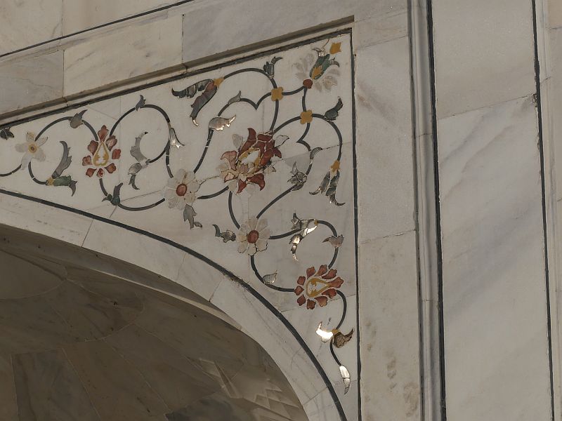 Once inside the Red Fort, visitors would find themselves in a magnificent courtyard garden (guarded later by large cannons) surrounded by beautifully-decorated arcades. It was from these that the golden decorations were melted away by the Persians; today you can easily see the blackened lines where the gold had been, with a small section painted to illustrate how beautiful it would originally have been. Beyond this is an inner garden, as well as what was originally the harem - guarded by the Palace Eunuchs - which surrounded an artificial pond filled with fish which the ladies would amuse themselves by catching (it has since been filled in and grassed over).