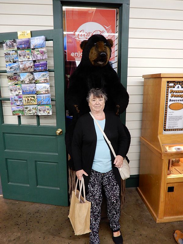 After a restful day's cruising, which helped us to get over our jet-lag, the following day saw us arrive at Mackinac Island (pronounced 'Mackinaw') which is particularly noted for its lack of vehicular traffic. Apparently in 1898 the first car to arrive on the island made a noise and frightened the horses, so motor cars were promptly banned and still remain so. Instead there are horse-drawn carriages and coaches, horse-drawn taxis, and a horse-drawn hearse. They do however now have a motorised fire engine and ambulance. We were well prepared for warm weather but it was actually quite chilly on the Island, which gave Debbie the excuse to buy a very nice sweatshirt as a souvenir.