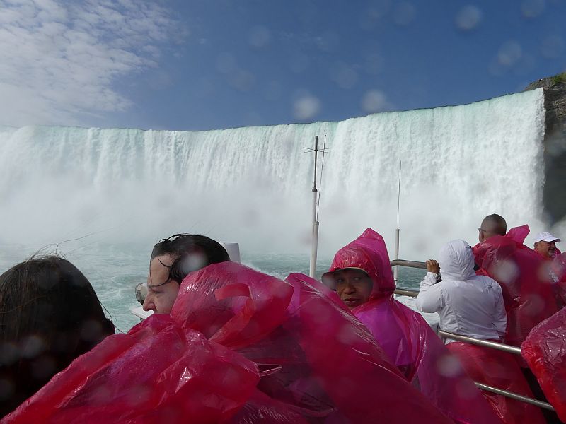 The Maid of the Mist boat takes you right up to the base of the Canadian falls, passing the smaller rocky American Falls on the way. |