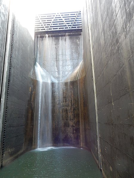 On our previous river trips we had been through some deep locks (45ft on the Erie Canal, and 100ft in a 3-lock staircase on the Gota Canal) but these were nothing compared to the 5 locks on the River Douro, one of which is a single chamber with a rise of over 115ft. The ship is a tight fit in the lock chamber, and looking upwards from the bottom feels like looking up from the bottom of a well. There are floating bollards for the ship to tie to, and there is so little clearance at the sides that the ship even has small rubber jockey-wheels to act as fenders and allow it to touch the sides while moving without causing any damage. The lower gates are all guillotines set into the lower wall, but various different types of upper gate are used.