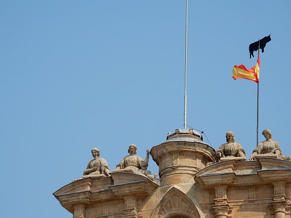 Salamanca is a city where once bull-fighting was extremely popular; evidence for this exists in a great many ways, including the image of a bull on top of many of the flagpoles (particularly around the bull-ring which, when we were there, was being prepared for a much more civilised activity, namely a grand concert), and also a great deal of ancient graffiti which had been painted on the old university walls in bull's blood.