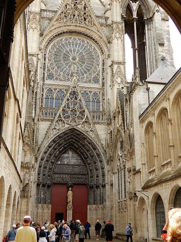 Meanwhile the ship took us further down the river to Rouen. With our guide we strolled happily around the city, admiring the medieval architecture. The upper floors of the old buildings all seemed to overhang the floors beneath them; we were told that this was because the houses were taxed according to their ground-level size. Unfortunately this had led to the houses almost touching each other at the higher levels which, apart from the health risks when waste matter was tipped out of the upper windows, caused the alleyways to act like chimneys if ever there was a fire, so the system of taxation had been changed to a window tax instead.