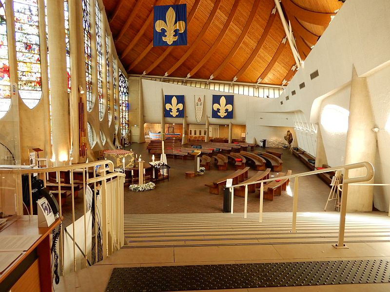Our tour of Rouen was not yet over. We visited the market square where Joan of Arc was martyred (something else that we Brits were to blame for) and admired the brand-new church which is dedicated to her memory. This modern building comprises massive windows of stained-glass that had been recovered from the nearby church which had been destroyed in 1944