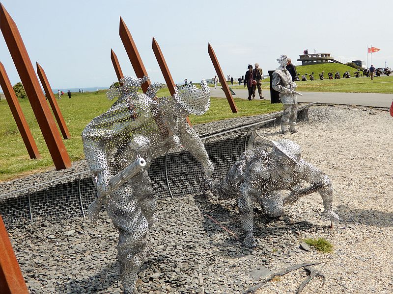 We were then taken to a charming old hotel for a superb home-cooked lunch before going forward to the Normandy Beaches. We were a small group of just 8 British and Commonwealth visitors in our coach, as all the Americans were visiting the beaches where the US troops had landed. First w visited the beach at Arromanche which is one of the two sites where Mulberry Harbours had been built to allow goods to be transported to Normandy on and after the D-Day landings. Apparently 9000 tons of materials were unloaded here every day!