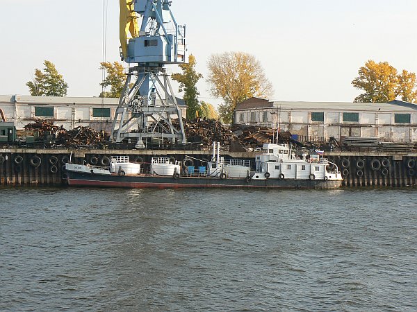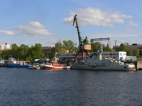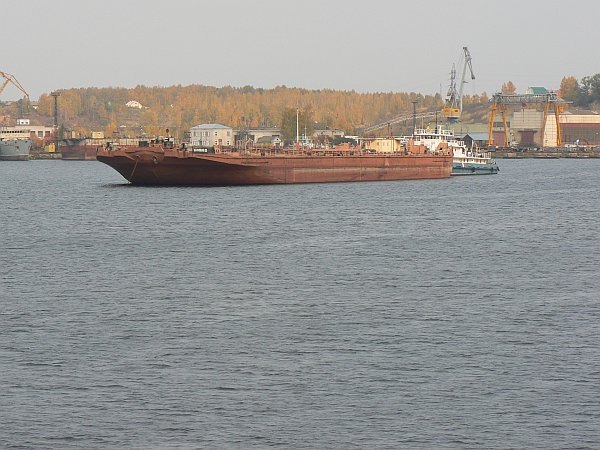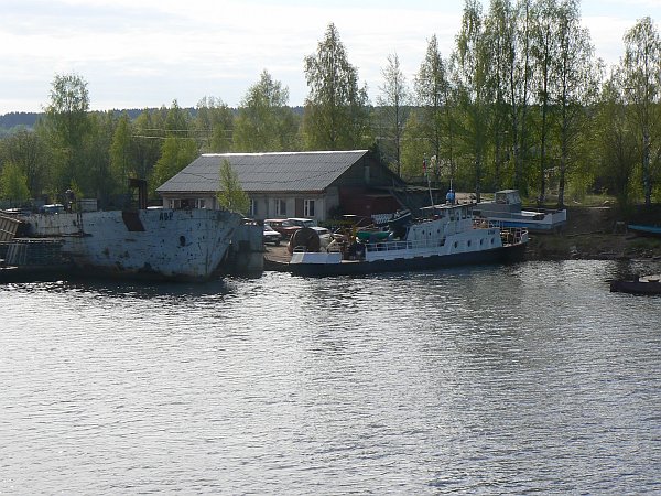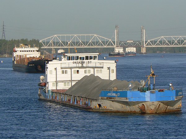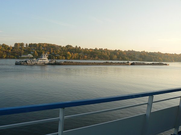 The 1000-mile journey from Moscow to St Petersburg can only be undertaken from May to September; at other times most of it is frozen. It is busy with shipping at all times, not just the tourist ships such as we were on, but also a great many barges which are generally pushed singly or in pairs by giant push-tugs; their cargoes are generally timber, or sand and gravel. Unusually, we even saw a submarine arrive in Moscow along the canal.