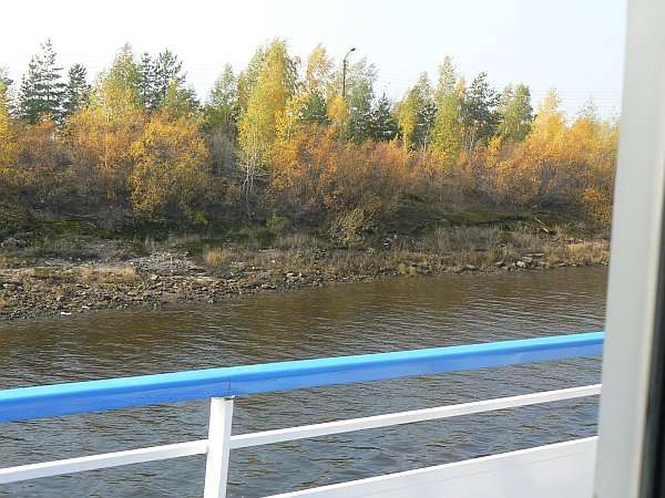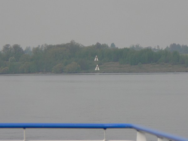At first on the Volga river you are on the Uglich reservoir, which was created to power a hydro-electric power station. At one point the spire of a church still stands above the water as a forlorn monument to a drowned village. Strangely you travel downstream eastwards on the Volga, but after a brief diversion to the city of Yaroslavl you turn north in the middle of the next reservoir onto a tributary (the River Sheksna) while the Volga turns south to head for the Caspian Sea.