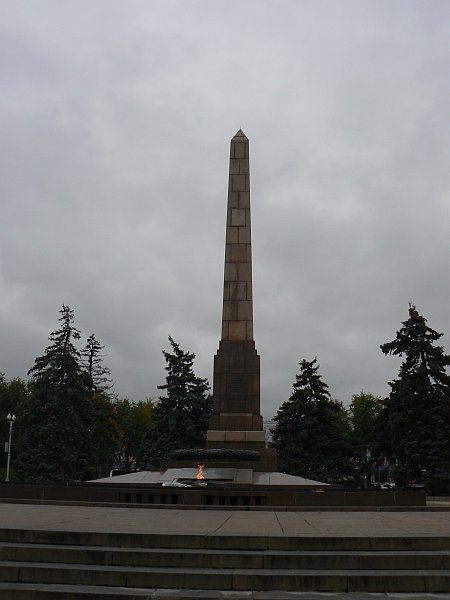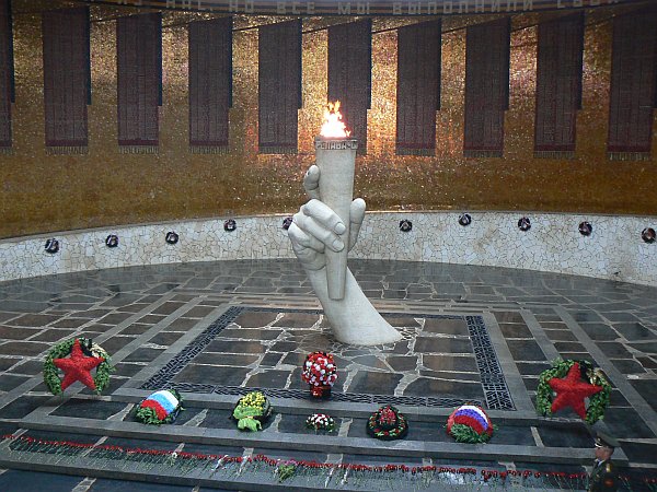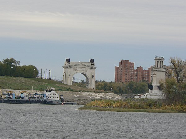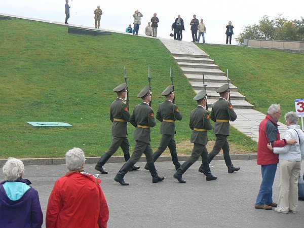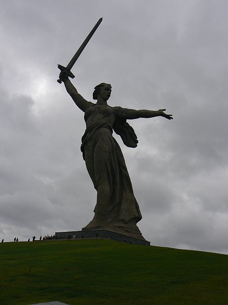 After the first part of our 3000-mile river trip, we arrived at Volgograd. The Russians seem to enjoy renaming their towns and their streets; this city was previously known as Stalingrad under which name it is probably best known for being the scene of one of the bloodiest battles of World War Two (or as named by many people that we spoke to, the Great Patriotic War). The battles and siege of the city lasted for 200 days in 1942/43, by the end of which the city had been totally destroyed and nearly two million soldiers had lost their lives. The two sides had fought to a stalemate, but the harshness of the Russian winter eventually defeated the German army who followed Hitler's express orders to never surrender. After the battle not one single building in the city remained standing; all that remained was one solitary tree in the centre of the city. A park has been created around this tree, with a memorial nearby comprising an obelisk and an 'eternal flame' which are guarded throughout every day by local schoolchildren who goose-step proudly at the ceremony of changing the guard every half-hour.
