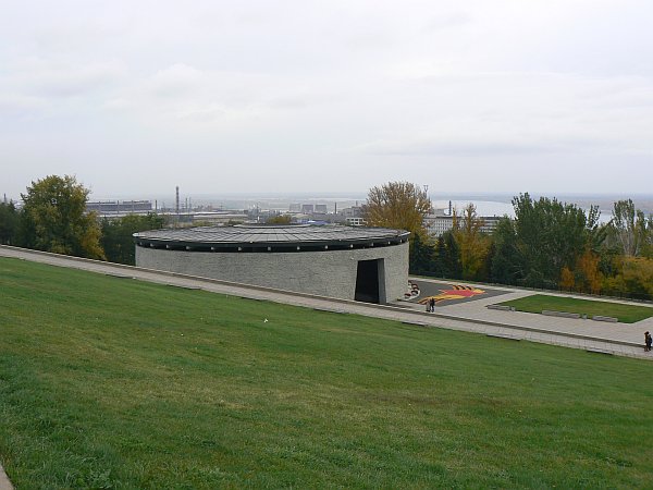 When the city was reconstructed after the war, even the alignment of the streets was changed to serve as an everlasting memorial in itself. The main memorial to the Battle of Stalingrad is just outside the city, on top of a hill which has 200 steps, one for every day of the siege. From the foot of the hill the statue of Mother Russia is visible high above you, but as you climb the steps your view is increasingly blocked by a statue of a Russian Soldier until at one point your view of Mother Russia is totally blocked and you can only proceed by passing the soldier. The symbolism is extremely powerful.