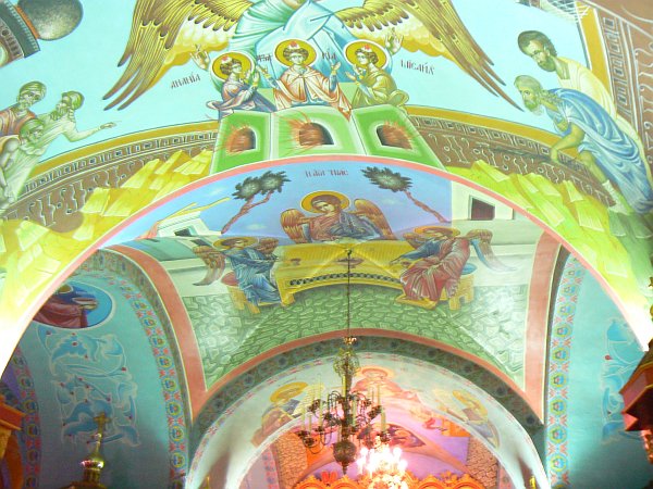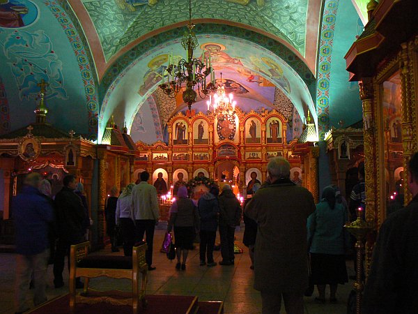 The church inside the Kremlin (whose entrance tower leans rather badly) is as beautifully decorated as any that we saw on our travels, in contrast to which a garden gnome sits outside the front steps! On the outside wall of a smaller church nearby is an old icon; we were told that it had hung there for centuries without being affected by the weather, but fearful for its safety the authorities had moved it inside the church a few years ago; that night the precise spot where it used to hang was struck by lightning, which was taken as a sign that it should not have been removed. The icon was hurriedly replaced on the outside wall, but now with a glazed frame for protection, and there it will remain.