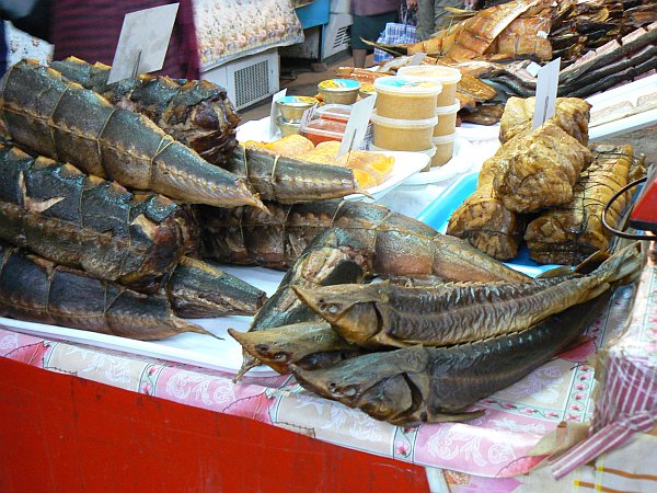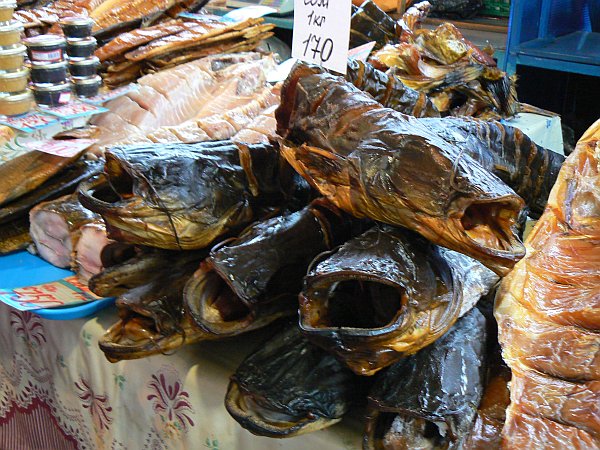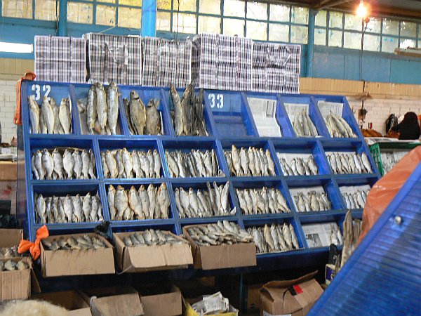 Astrakhan is particularly known for its fish, and we were lucky enough to visit the fish market. There was an absolutely dazzling array of fish, both fresh and dried, of all types including many whose type we couldn't even guess at. We didn't buy any fish, but we did buy ourselves a small pot of caviar to bring home with us - at a price that wouldn't have bought even a spoonful of caviar in this country.