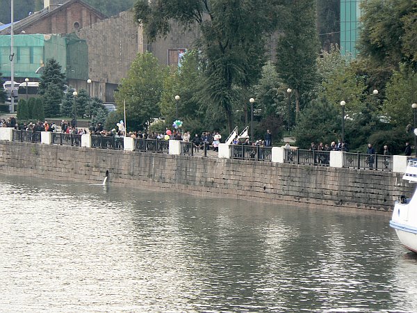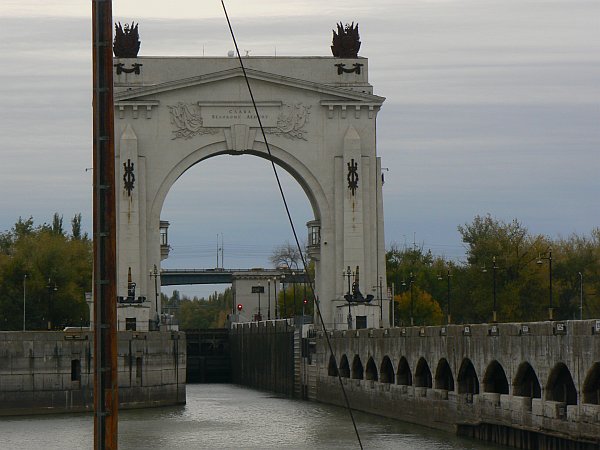 The canal has a steep flight of locks to its upper level, after which the channel crosses a massive reservoir 45km across, followed by a flight of locks down to the River Don. Finally we arrived in Rostov-on-Don, our ship's home port where it would spend the winter. Many of the crew had been away for up to 6 months, and the quayside was lined with banner-waving families as we moored up to the sounds of stirring music playing loudly on the ship's PA system.